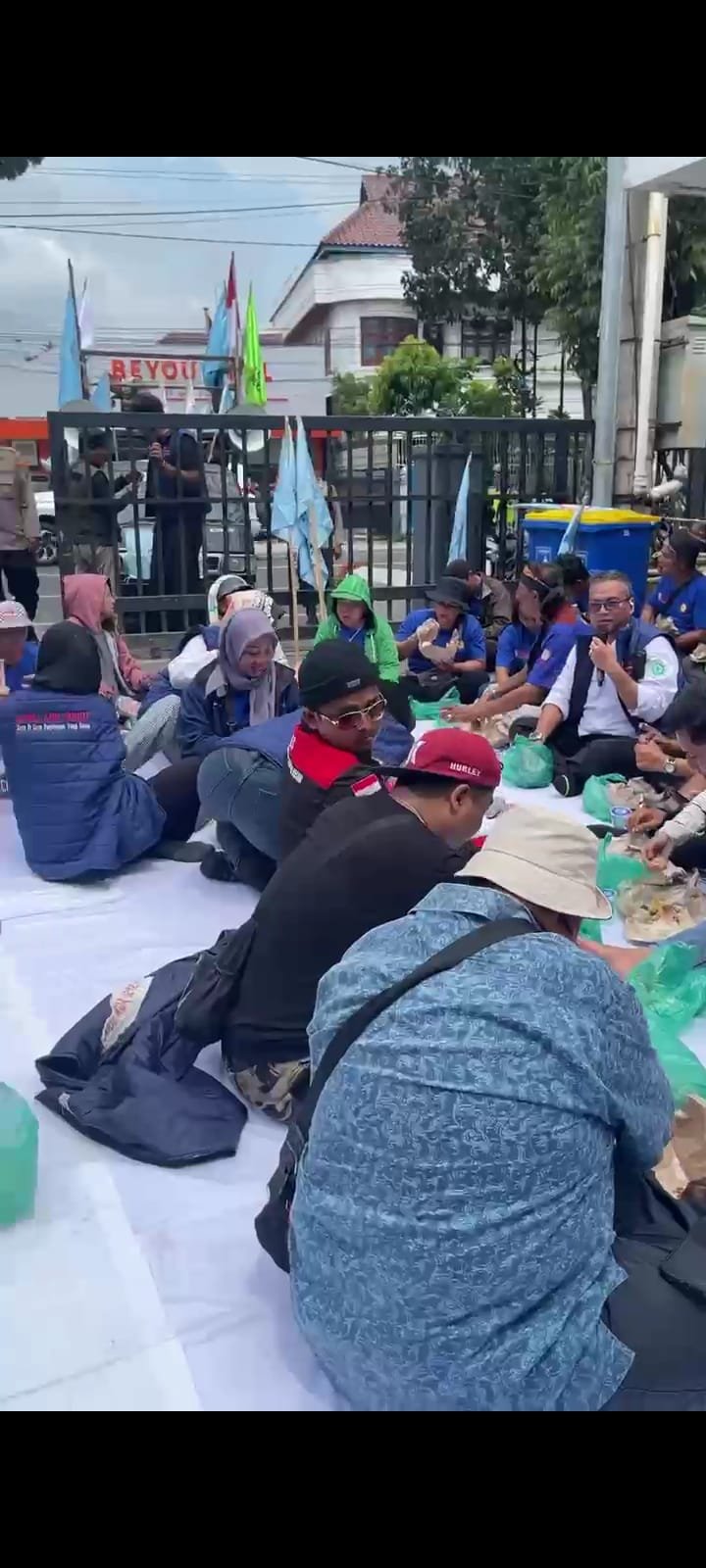 Aksi yang berlangsung tertib tersebut dilakukan dengan cara yang cukup unik. Massa aksi menggelar makan siang bersama di pelataran parkir kantor BPJS Ketenagakerjaan. Ini sebagai bentuk simbolik solidaritas sekaligus pesan, bahwa para pekerja dan buruh merupakan pihak yang selama ini menopang keberlangsungan lembaga jaminan sosial tersebut.