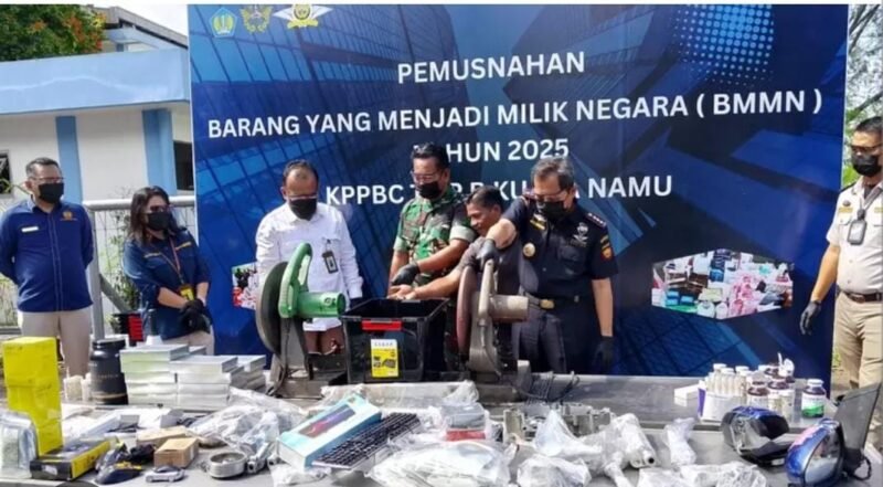 MEDAN, SUARASUMUTONLINE. ID – Untuk meningkatkan pengawasan sekaligus melindungi masyarakat, Bea Cukai Kualanamu memusnahkan sebanyak 4.442 unit Barang Menjadi Milik Negara (BMMN) yang disita dari penumpang pada medio Agustus–November 2025. Pemusnahan dilakukan di Lapangan Equinox Kantor Bea dan Cukai Kualanamu, Rabu (3/12).