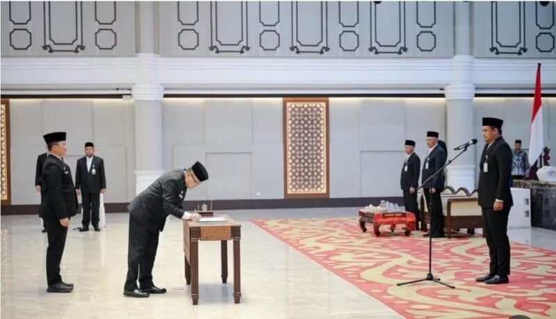 MEDAN, SUARASUMUTONLINE.ID – Gubernur Sumatera Utara (Sumut) Bobby Nasution melantik empat Pejabat Pimpinan Tinggi Pratama di lingkungan Pemerintah Provinsi (Pemprov) Sumut. Pelantikan dan pengambilan sumpah dilakukan di Aula Raja Inal Siregar, Jumat (2/1) sore.