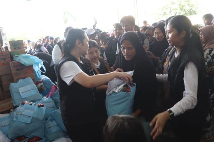 Usai pertemuan, rombongan Setkab bersama jajaran Polres Langkat bergerak menuju Kecamatan Tanjungpura. Penyaluran bantuan dilakukan di dua titik, yaitu Posko Bersama Jalan T. Amir Hamzah dan Masjid Istiqomah Dusun Cempaka, Desa Teluk Bakung. Seluruh kegiatan berlangsung aman, tertib, dan lancar.