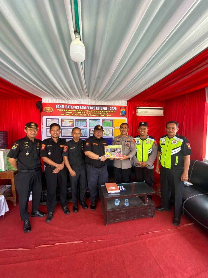 SERDANG BEDAGAI, SUARASUMUTONLINE.ID – Ketua Sentra Komunikasi (Senkom) Mitra Polri Provinsi Sumatera Utara dan jajaran melaksanakan kunjungan ke Pos Pengamanan (Pospam) Alun-Alun Kabupaten Serdang Bedagai dalam rangka memantau kesiapsiagaan personel pengamanan, khususnya menjelang momentum Hari Raya, Rabu (18/3).