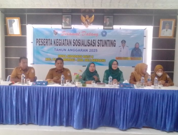 DELI SERDANG, SUARASUMUTONLINE.ID – Untuk memberikan edukasi dan peningkatan kesadaran pencegahan Stunting, Pemerintah Desa Sidodadi Batu 8 Kecamatan Pagar Merbau laksanakan kegiatan sosialisasi Stunting,Selasa (7/10). Kegiatan ini merupakan bagian dari program pemberdayaan masyarakat tahun anggaran 2025.