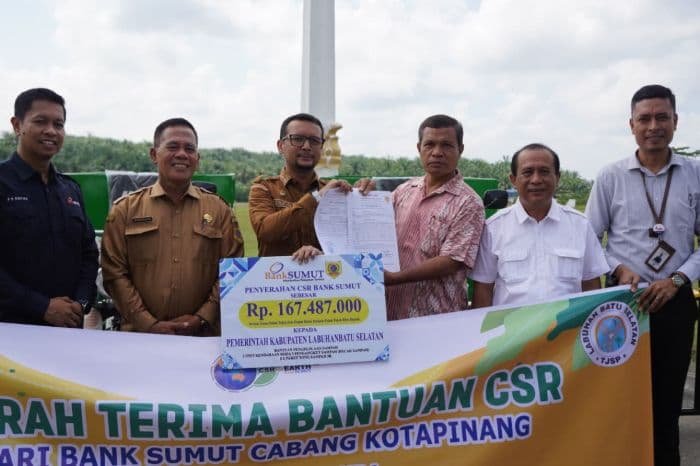 LABUHAN BATU, SUARASUMUTONLINE.ID – Pemerintah Kabupaten Labuhanbatu Selatan (Labusel) menerima bantuan Corporate Social Responsibility (CSR) dari PT Bank Sumut melalui Tim Tanggung Jawab Sosial Perusahaan (TJSP), yang diserahkan di halaman Kantor Bupati Labusel, Selasa (28/4).