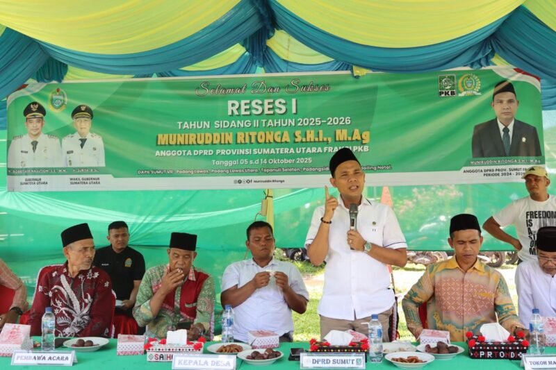PALUTA,SUARASUMUTONLINE.ID – Padang Lawas Utara. Anggota Dewan Perwakilan Rakyat Daerah (DPRD) Provinsi Sumatera Utara Muniruddin Ritonga S.H.I., M.Ag melaksanakan Reses I Tahun Sidang II Tahun 2025-2026 di desa Hutaimbaru Kecamatan Halongonan Kabupaten Padang Lawas Utara pada tanggal 6 Oktober 2025 yang diikuti oleh masyarakat desa Hutaimbaru.