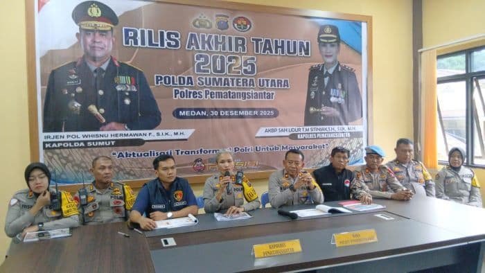 PEMATANG SIANTAR, SUARASUMUTONLINE.ID -Polres Pematangsiantar menangani 1.252 kasus sepanjang tahun 2025, naik beberapa persen dibandingkan tahun 2024 yang hanya 1.130 kasus. Dari jumlah ini, terjadi penurunan kasus konvensional sebanyak 3,5 persen, namun untuk kasus transrasional mengalami kenaikan sebanyak 34,7 persen.