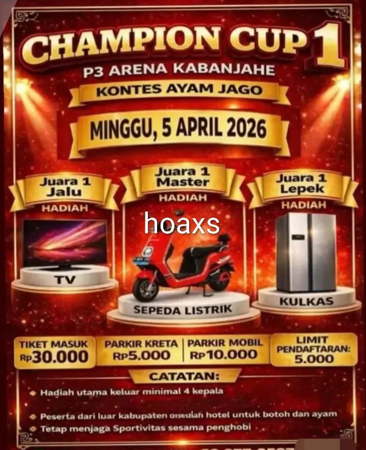 KARO, SUARASUMUTONLINE.ID – Masyarakat Kabupaten Tanah Karo diguncang oleh beredarnya informasi hoaks terkait kegiatan arena sabung ayam berhadiah utama satu unit sepeda motor.