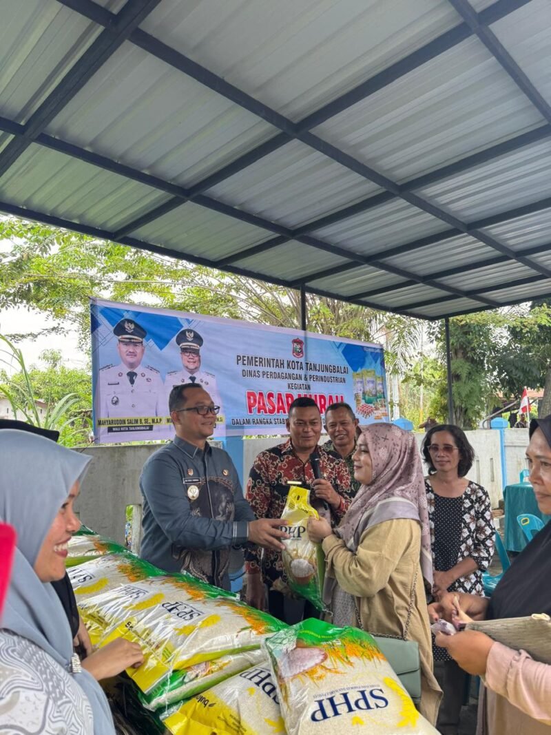 TANJUNG BALAI-SUARA SUMUT ONLINE. ID – Wakil Wali Kota Tanjungbalai , Muhammad Fadly Abdina meninjau pelaksanaan pasar murah yang dilksanakan di Kecamatan Teluk Nibung, Kamis (14/8/2025). Kegiatan ini digelar menjaga stabilitas pasokan dan harga pangan di Kota Tanjungbalai.