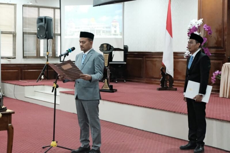 TANJUNGBALAI- SUARA SUMUT ONLINE. ID – Wali Kota Tanjungbalai Mahyaruddin Salim mengukuhkan 22 (Dua Puluh Dua) Kepala Sekolah Dasar dan Pejabat Fungsional di Lingkungan Pemerintah Kota Tanjungbalai. Pengambilan sumpah dan jabatan dilaksanakan di Aula Sutrisno Hadi, Kantor Wali Kota Tanjungbalai, Selasa (31/3/2026)