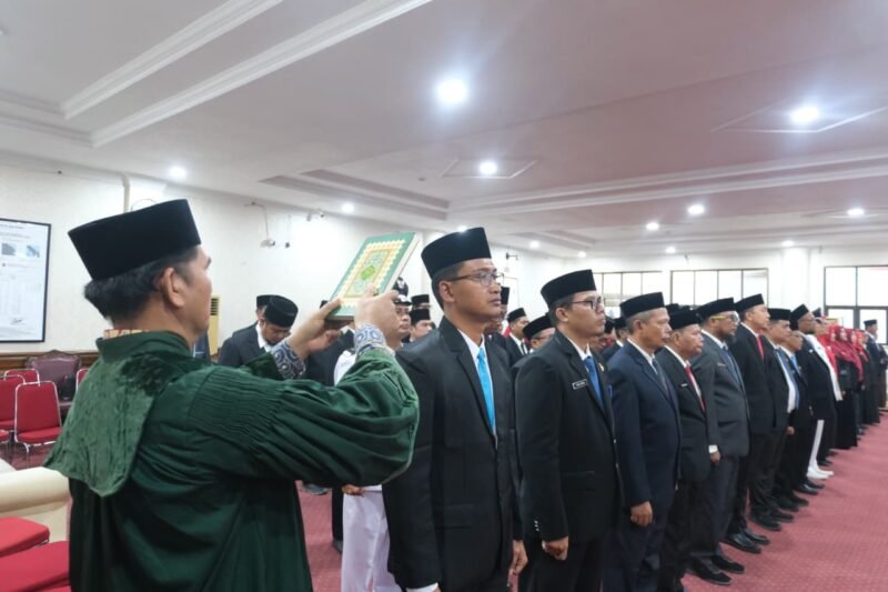 TANJUNG BALAI-SUARA SUMUT ONLINE. ID – Wakil Wali Kota Tanjungbalai, Muhammad Fadly Abdina melakukan pelantikan dan pengambilan sumpah jabatan Pejabat Pimpinan Tinggi Pratama, Administrator, Pengawas dan Pejabat Fungsional di lingkungan Pemko Tanjungbalai, di Aula Sutrisno Hadi, Kantor Wali Kota Tanjungbalai, Rabu (31/12/25) sore.