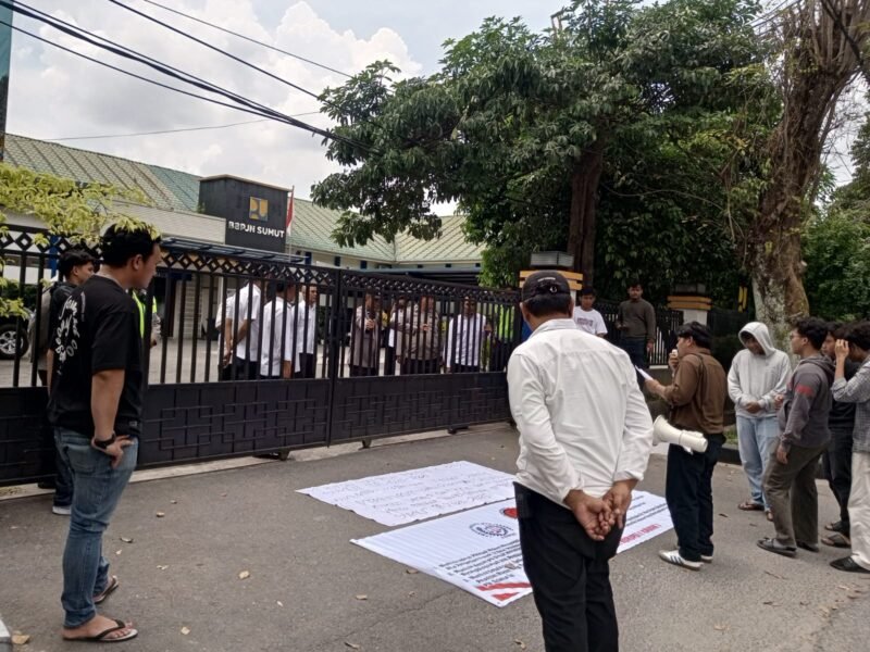 ” Dari penyusuran serta pengumpulan bukti baik tertulis maupun keterangan telah tampak terjadi dugaan tindak pidana korupsi yang belum tersentuh hukum yang terjadi di lingkungan Sekretariat Dewan (Sekwan) DPRD Sumatera Utara. Hingga kami menduga akibat perbuatan yang mencederai hukum ini tidak sedikit hasil dari kualitas pekerjaan di lapangan yang semuanya bersumber dari keuangan negara mengakibatkan pekerjaan itu tidak sesuai dengan spek bahkan ada yang hancur pasca selesainya pekerjaan yang tidak berlangsung lama, ” tegas koordinator lapangan Muhammad Rafli Utomo Aziz Sibarani.