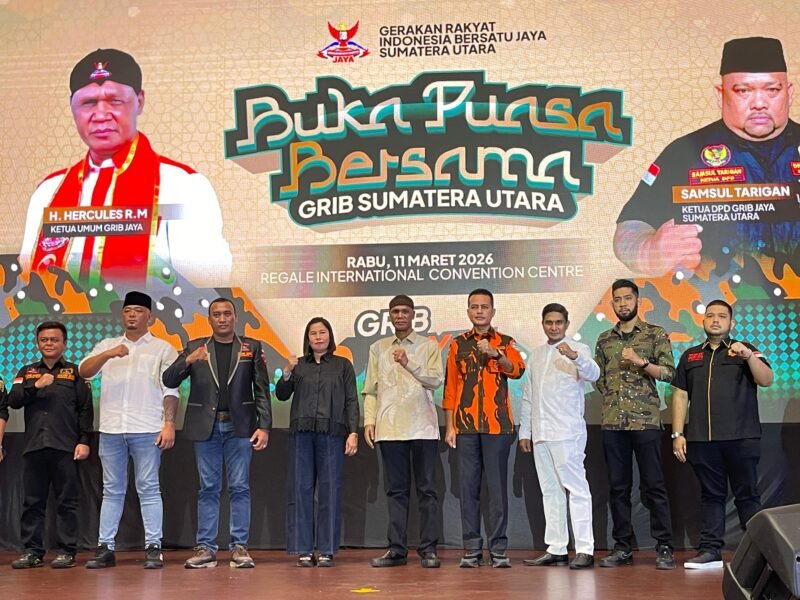 MEDAN, SUARASUMUT ONLINE.ID – Suasana khidmat namun penuh semangat menyelimuti Regale International Convention Centre. Ratusan kader organisasi kemasyarakatan Gerakan Rakyat Indonesia Bersatu (GRIB) Jaya Sumatera Utara berkumpul dalam agenda Buka Puasa Bersama yang dihadiri langsung oleh Ketua Umum, Hercules Rosario Marshal.