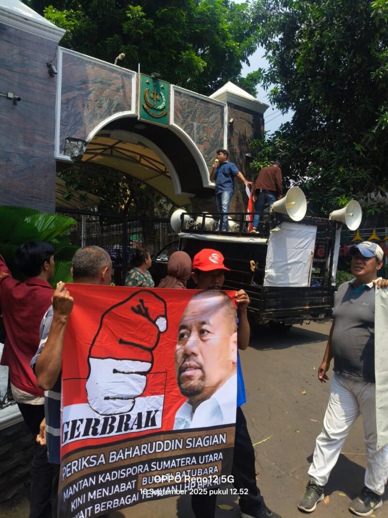 Puluhan massa bergerak menuju Gedung Komisi Pemberantasan Korupsi (KPK), Markas Besar Kepolisian Republik Indonesia (Mabes Polri), dan Kejaksaan Agung Republik Indonesia (Kejagung RI) untuk mendesak penuntasan kasus-kasus dugaan korupsi di Sumatera Utara yang hingga kini dinilai belum mendapat penanganan serius.