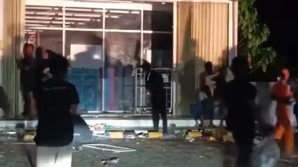 Dari rekaman terlihat puluhan orang berbondong-bondong memaksa masuk ke satu minimarket lalu mengambil sejumlah barang yang ada di dalam minimarket.