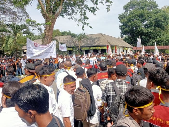 Dalam aksinya, massa menyampaikan sejumlah tuntutan kepada manajemen perusahaan. Di antaranya meminta kenaikan upah karyawan tetap yang disebut sejak 1 Januari 2025 masih berada di bawah upah karyawan kontrak.