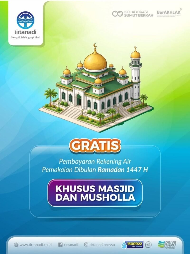 “Bulan April 2026 seluruh masjid dan musala yang ada di Kota Medan maupun Daerah Tingkat II (Zona 2) yang menjalin Kerja Sama Operasi (KSO) dengan Perumda Tirtanadi seperti Deliserdang, Tapsel, Samosir, Toba dan Nias. Pembayaran rekening airnya (April 2026) gratis,” ujar Ardian Surbakti