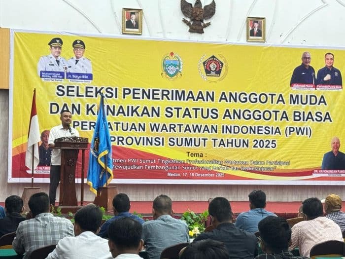MEDAN, SUARASUMUTONLINE.ID –Persatuan Wartawan Indonesia (PWI) Sumatra Utara (Sumut) secara resmi membuka seleksi anggota muda dan kenaikan status anggota biasa di Hotel Madani, Jalan Sisingamangaraja, Kota Medan, Sabtu (20/12).