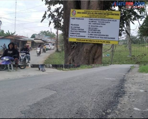 MEDAN, SUARASUMUT ONLINE.ID – Pengerjaan pemeliharaan berkala ruas jalan oleh dinas SDAMBK Kabupaten Deli Serdang, di Kelumpang Tanjung Gusta diduga asal jadi.