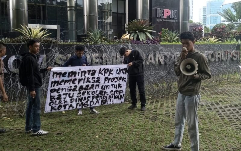 JAKARTA, SUARASUMUTONLINE.ID– Aliansi Pemuda Peduli Rakyat Indonesia (APPRI) menggelar aksi unjuk rasa di depan Gedung Komisi Pemberantasan Korupsi Republik Indonesia (KPK RI), Selasa (10/2). Dalam aksi tersebut, APPRI mendesak KPK untuk memeriksa Kepala Dinas , Sekretaris Dinas Pendidikan Kota Medan terkait pengadaan atribut pakaian siswa SMP Kota Medan tahun anggaran 2024.