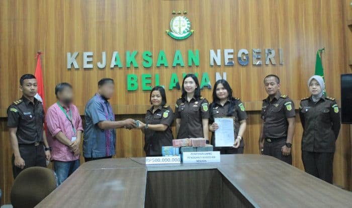 MEDAN, SUARASUMUTONLINE.ID – Mantan Kepala SMAN 19 Medan, Renata Nasution, membayar uang pengganti (UP) kerugian keuangan negara terkait kasus dugaan korupsi dana Bantuan Operasional Sekolah (BOS) tahun 2022–2023 ke negara melalui Kejaksaan Negeri (Kejari) Belawan.