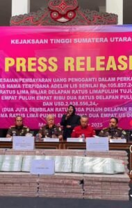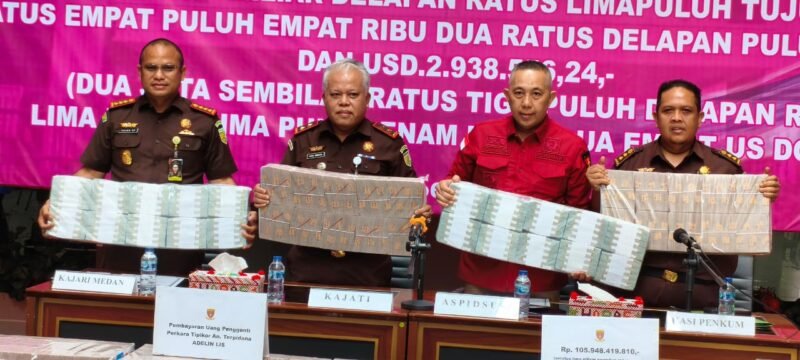 MEDAN, SUARASUMUTONLINE.ID- Kejaksaan Tinggi Sumatera Utara (Kejatisu) menerima pengembalian Uang Pengganti ( UP) dari terpidana pembalakan liar 10 tahun penjara, Adelin Lis, sebesar Rp105.857.244.282,40 dan US$2.938.556,40.