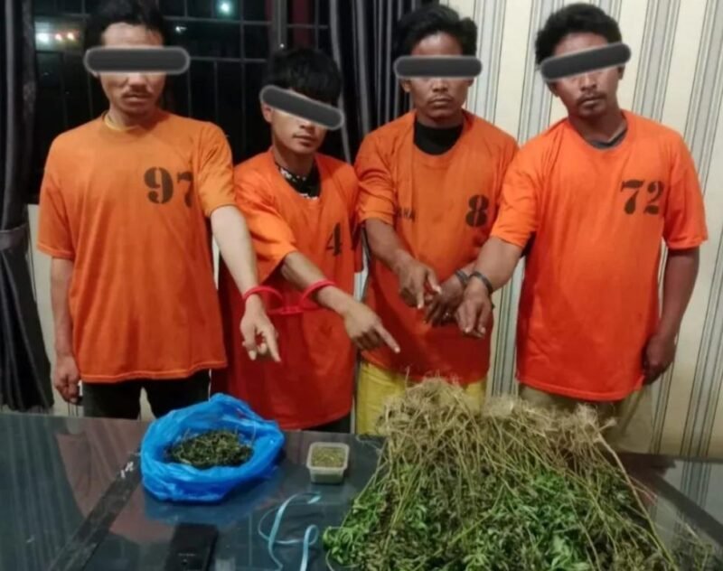 “Seluruh tanaman tersebut dalam kondisi lembap dengan total berat netto mencapai 650 gram. Tanaman ganja itu ditemukan terikat menggunakan tali plastik biru dan disembunyikan di atas tumpukan kayu,” tambahnya.