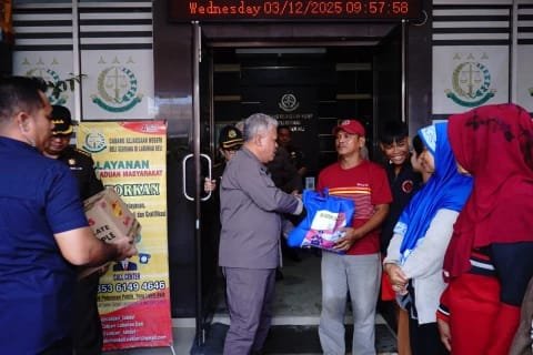 Setelah melihat dan menyapa jajaran Kejaksaan Labuhan Deli, kemudian rombongan memberikan bantuan berupa paket sembako dan makanan ringan kepada keluarga besar jajaran Cabang Kejaksaan Negeri Labuhan Deli yang terdampak bencana hingga kepada masyarakat atau warga yang terdampak bencana banjir di daerah terdekat dengan letak kantor tersebut.