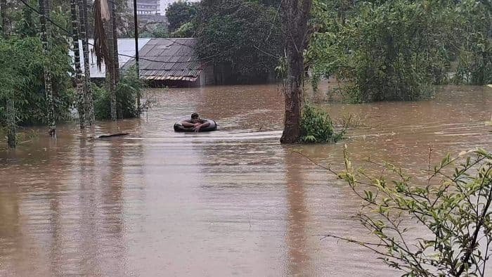 Banjir sudah menggenangi rumah warga sejak Kamis pagi. Dilanjutkan Jefri, akibat banjir personel sedang berusaha mengevakuasi lima orang warga yang terjebak di dalam rumah.