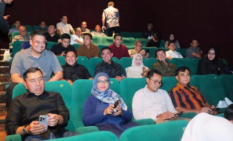 MEDAN, SUARASUMUTONLINE.ID- Gubernur Sumatera Utara (Sumut) Muhammad Bobby Nasution bersama unsur Forum Koordinasi Pimpinan Daerah (Forkopimda) nonton bareng (Nobar) film yang berjudul Believe. Film tersebut menggambarkan pentingnya integritas, keteladanan, dan pengorbanan demi bangsa bagi seorang pemimpin.