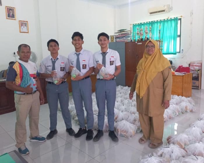 “Karena pulang jam dua, kita bagikan ke seluruh siswa sebelum pulang. Harapannya mereka bisa membawa pulang ke rumah sehingga tidak menimbulkan kecemburuan ketika ada yang makan dan ada yang tidak,” ujarnya, Senin (23/2).